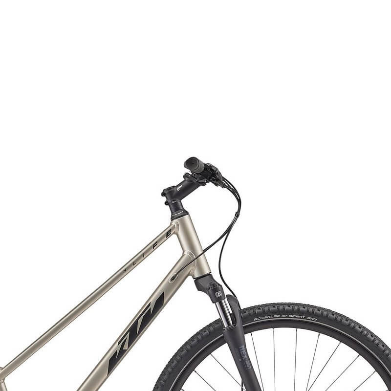 Az X-LIFE kerékpárok pihentető utazást tesznek lehetővé, így élvezheted a természetet. A maximális elégedettség érdekében csak meg kell találnod az igényeidnek megfelelő KTM cross trekking kerékpárt. Minden X-LIFE modell felfüggesztett villával van felszerelve és nagyobb tapadást kínál, mint az on-road testvérek. Az integrált kábelvezetés és a kormányra épített elülső prizma biztosítja, hogy a kerékpárok hatékonyak és tartósak legyenek. A kúpos fejcső növeli a kormánycső merevségét.